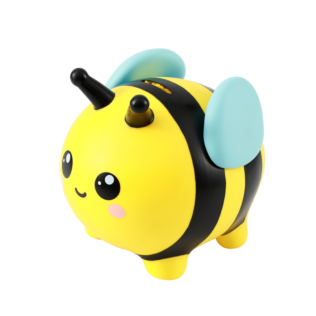 Con un design giocoso, il salvadanaio a forma di ape, aggiunge divertimento alla tua routine di risparmio. Gadget educativo e moderno. Realizzato in plastica resistente.