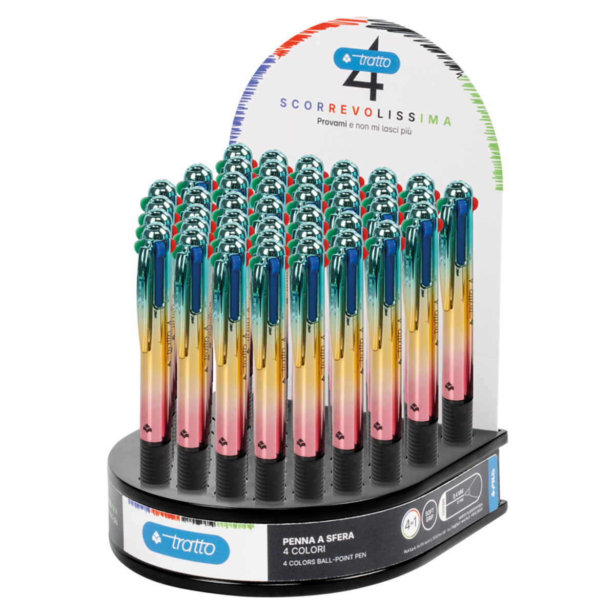 Pratica penna a sfera Tratto 4 Prisma con 4 colori in un’unica penna, ideale per scuola e didattica e per organizzare appunti in modo semplice e veloce.