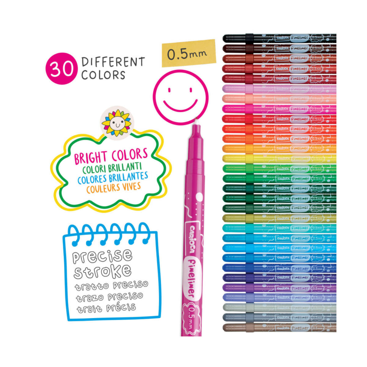 Set di 30 fineliner Carioca con tratto preciso e colori brillanti, perfetti per scrittura, disegno e attività creative professionali o didattiche.