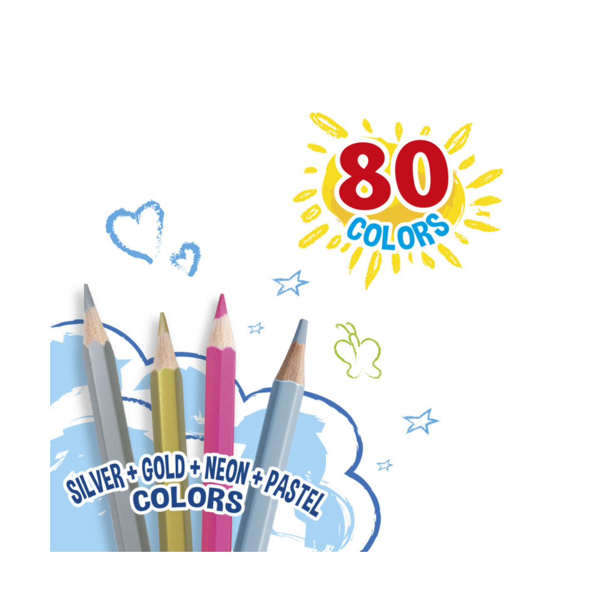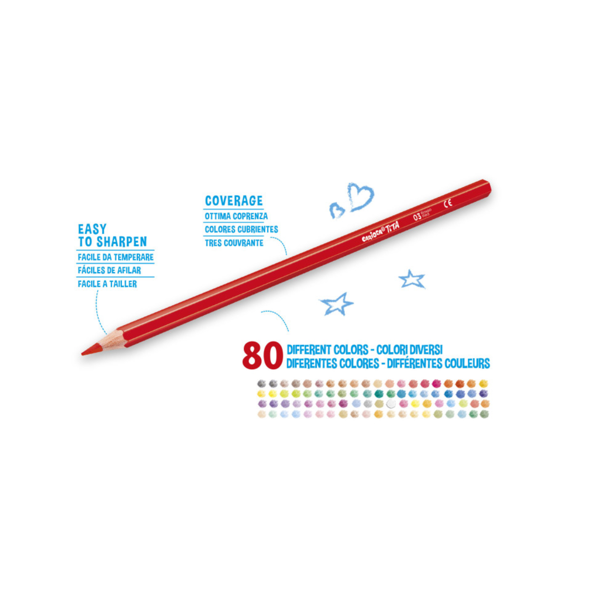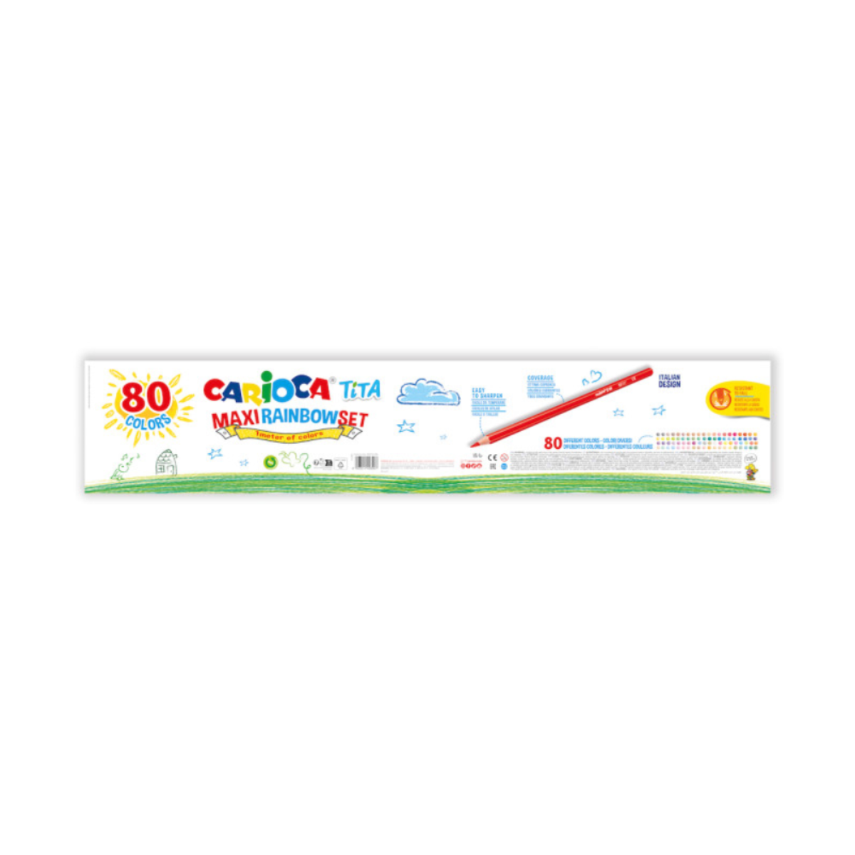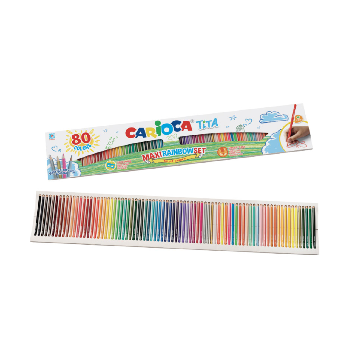 Raffinato set di 80 pastelli Tita Maxi Rainbow della Carioca, ideale per attività artistiche, disegno e colorazione professionale o didattica. Matite super colorate in 80 colori diversi.