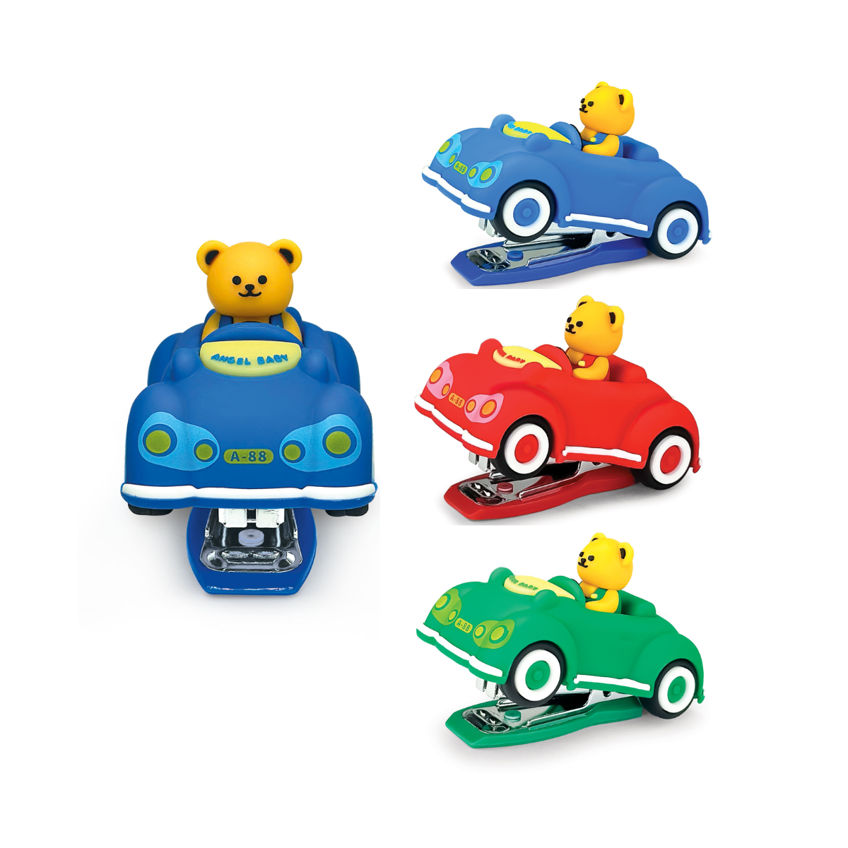Cucitrice a forma di macchinina. Disponibile in più colori.