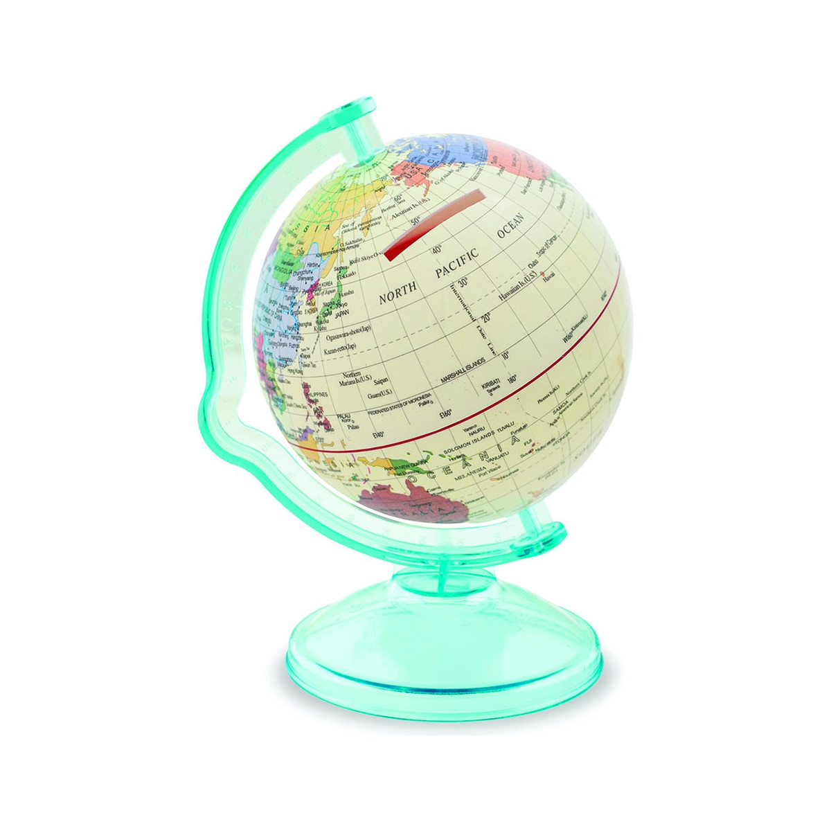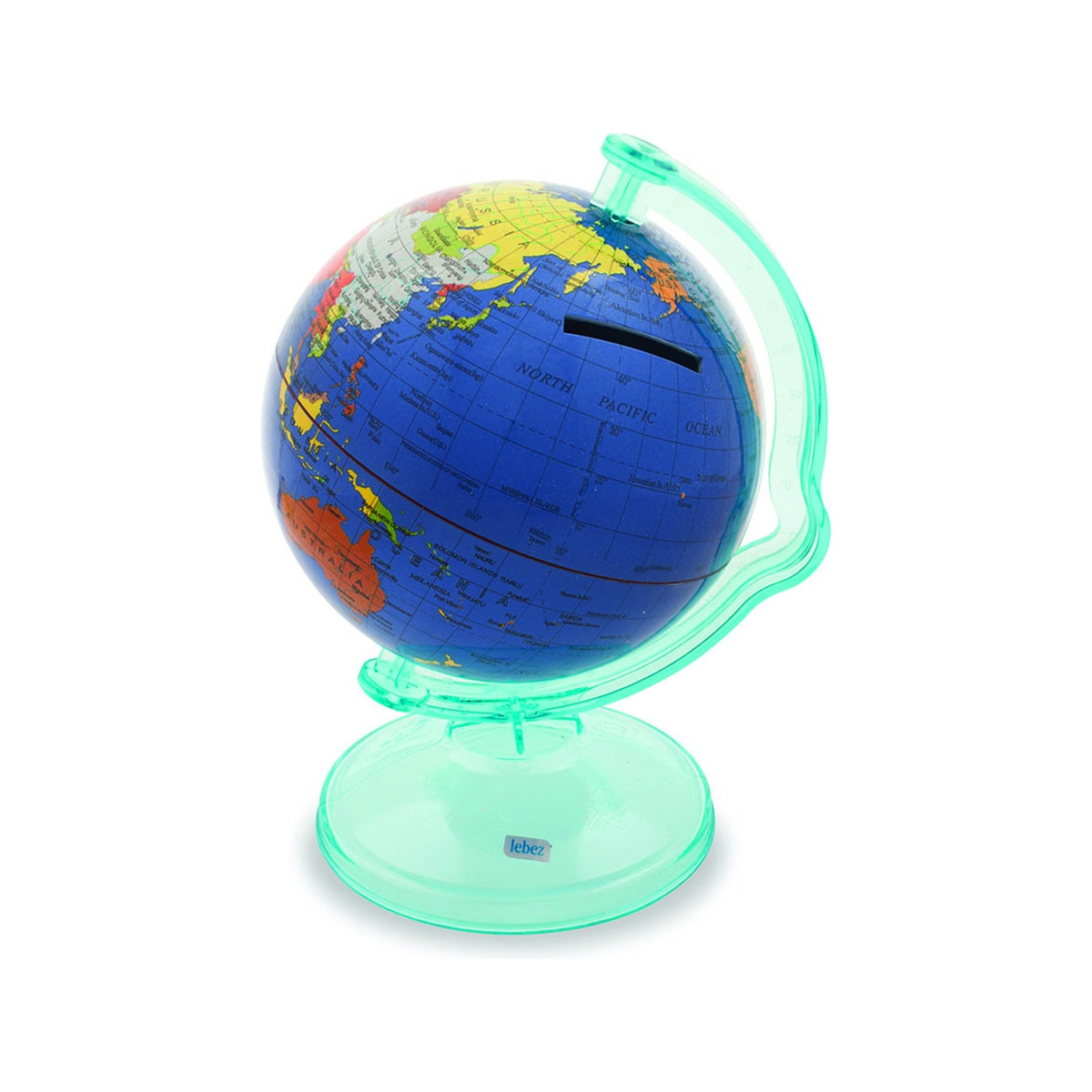 Globo salvadanaio. Globo girevole ad uso salvadanaio, diametro 10 cm. Disponibile in tre versioni di colori: inserisci il colore preferito nel campo Note