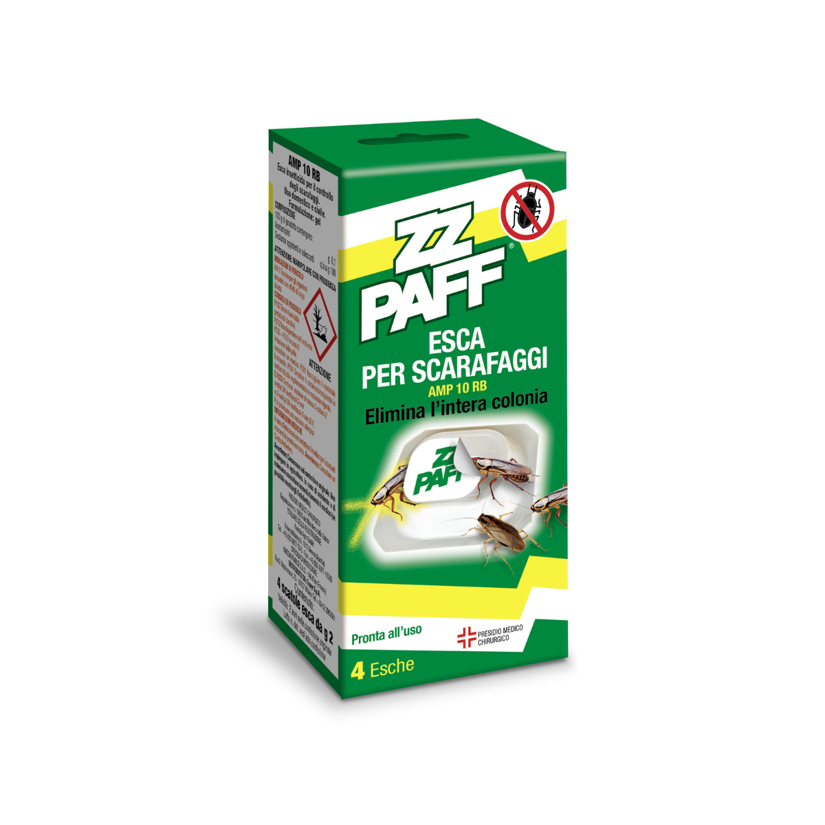 Prodotto anti-scarafaggi pronto all'uso. Esca formulata in gel per il controllo degli scarafaggi e blatte. Contiene l'Acetamiprid, sostanza attiva di nuova generazione. Il prodotto agisce per contatto ed ingestione, interferendo sulla trasmissione nervosa a livello post-sinaptico.