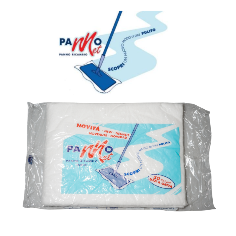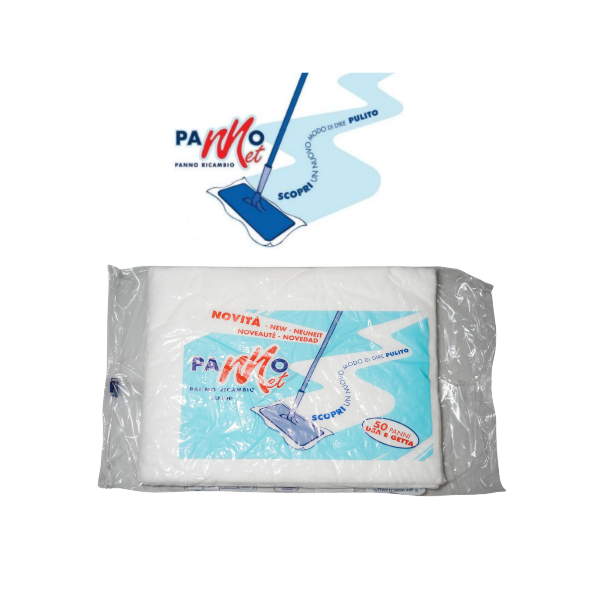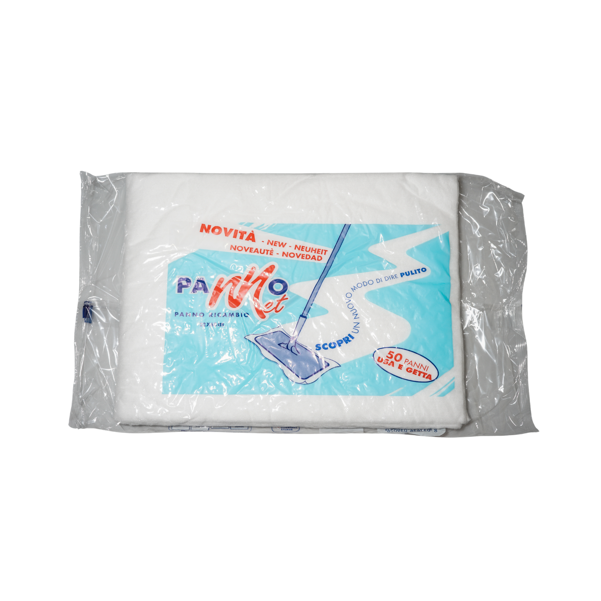 50 Panni antistatici monouso catturapolvere. Panno NET in tessuto non tessuto. Impregnato con olio minerale, conferente carica elettrostatica.