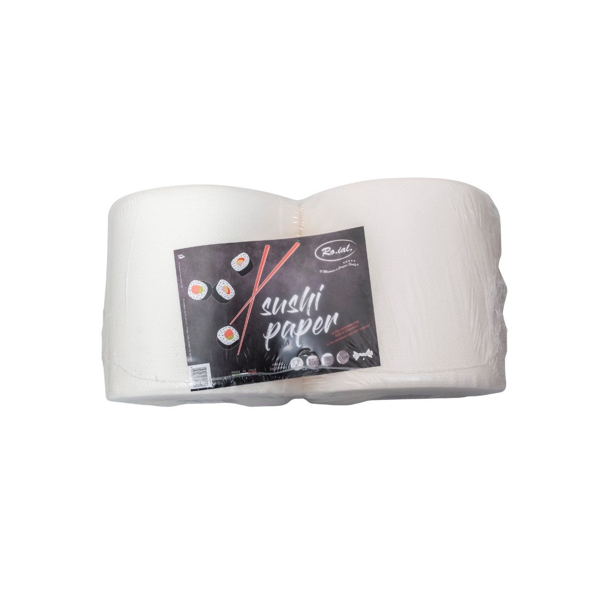 Questa carta è ideale per la preparazione di sushi nei ristoranti. Assorbe ed è ultra resistente. Ideale per mantenere pulito il tuo vassoio e la tua postazione lavorativa.