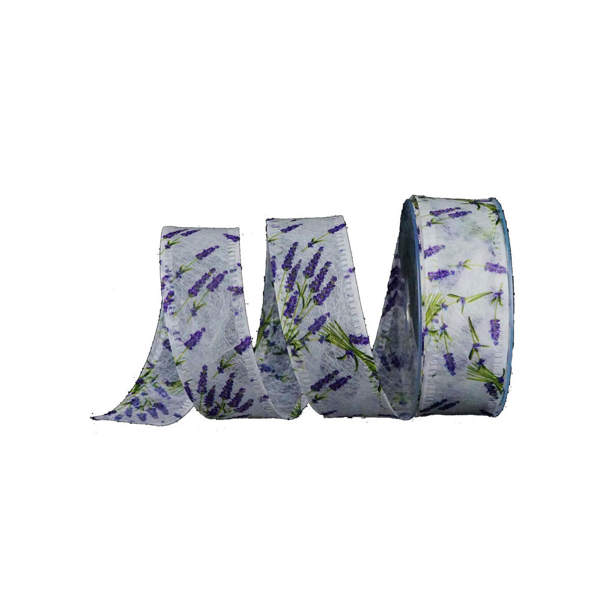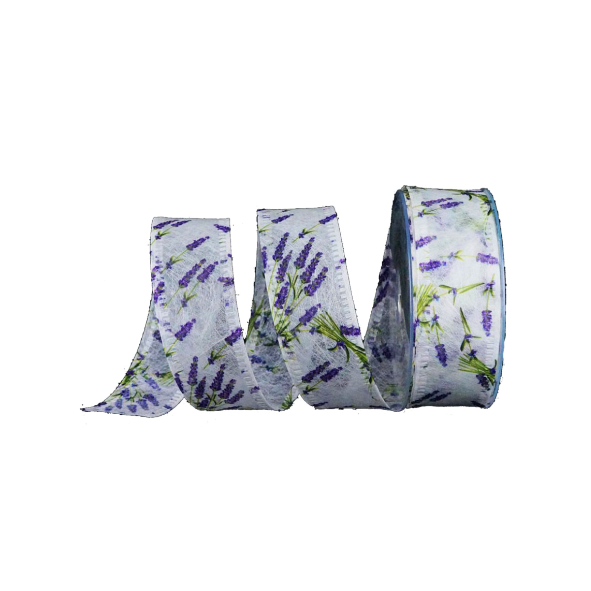 Nastro decofibra con stampa lavanda. E' un nastro perfetto per aggiungere un tocco di eleganza e colore ai tuo confezionamenti.