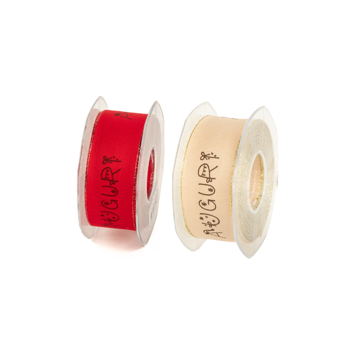 - Tessuto con stampa scritta AUGURI con decori natalizi su tutta la lunghezza del nastro