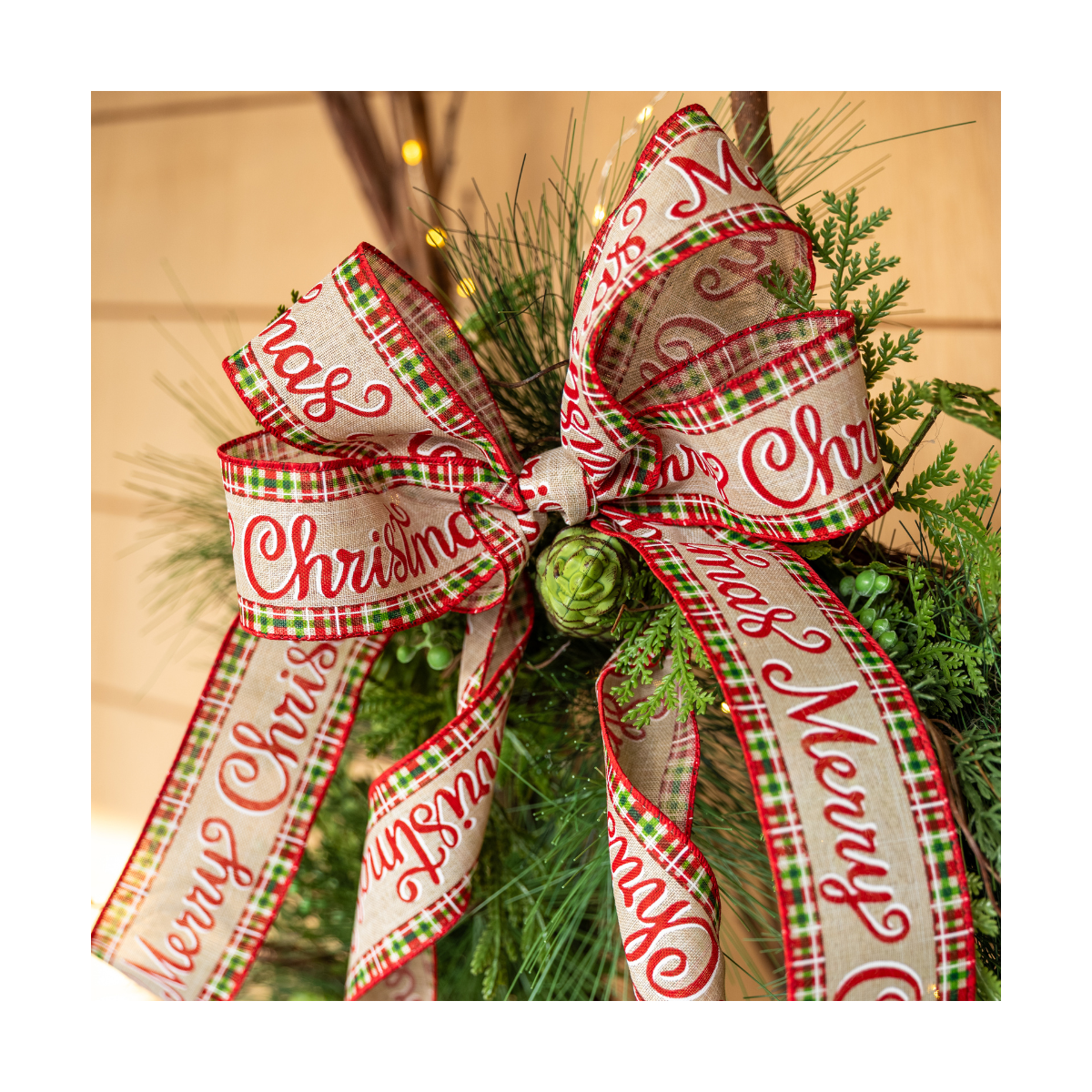 - stampa scritta Merry Christmas su tutta la lunghezza del nastro in lurex rosso