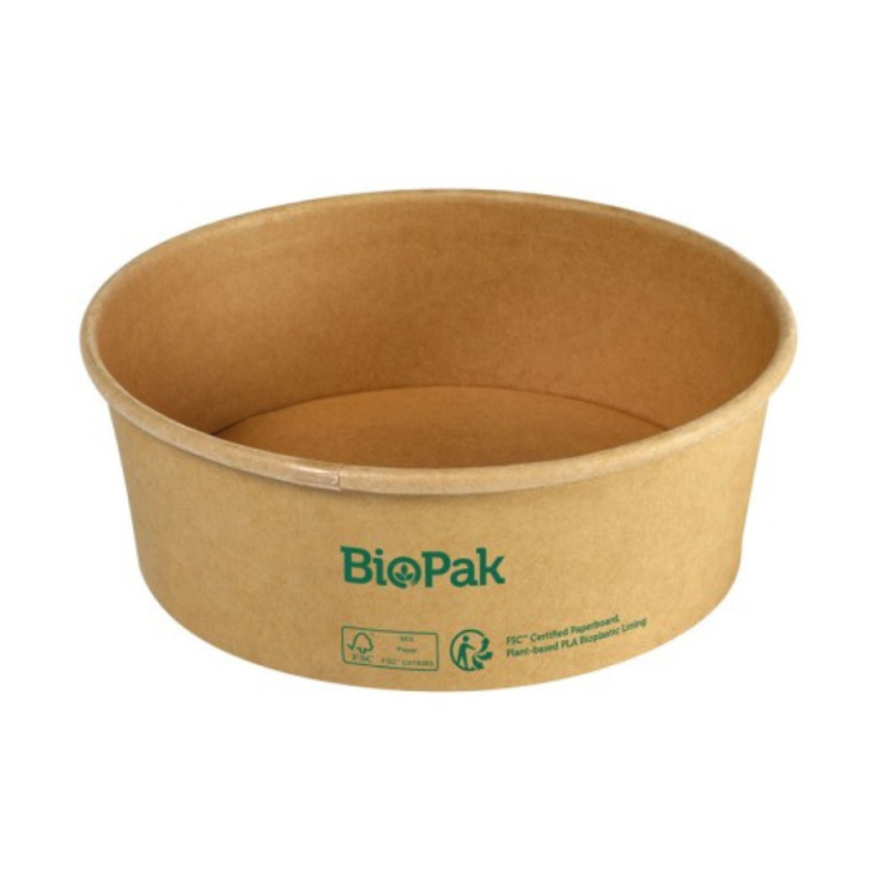 Ciotole ronda in cartone 184x66mm ideali per servire e confezionare poke, insalate, pasta o piatti freddi. Resistenti, sostenibili e compatibili con coperchi coordinati, perfette per uso professionale nel food delivery e take away.