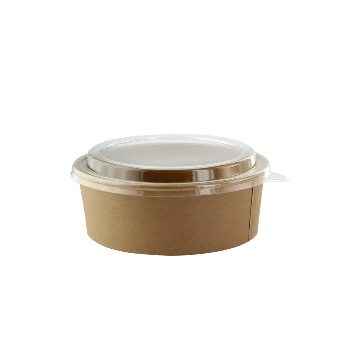 Insalatiera rotonda in cartone kraft avana, venduta in confezione completa di coperchio in PET a cupola trasparente. Combo-pack pratico e pronta all'uso. Misure devono intendersi diametro x altezza, in CM. Ogni confezione contiene 25 pezzi già combinati e assemblati.