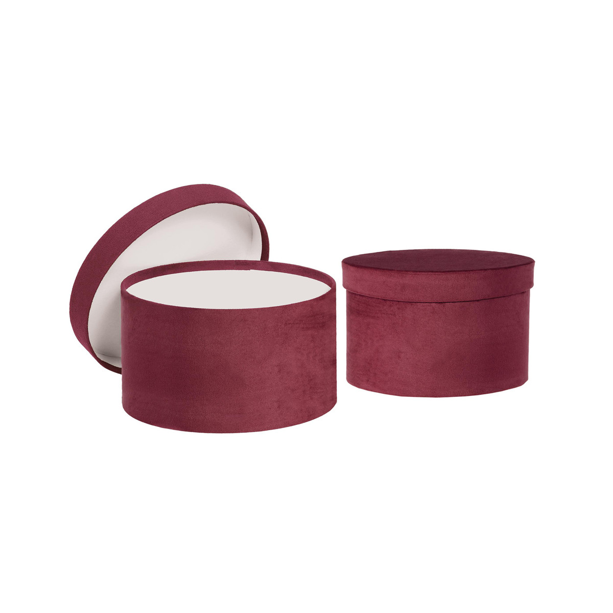 Elegante cappelliera tonda in velluto bordeaux, ideale come contenitore per regali, gioielli o oggetti di valore. Raffinata, resistente e pronta per un packaging di classe.