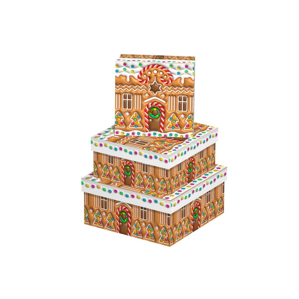 Set Scatole Quadrate Casetta di Marzapane (3 Pezzi)