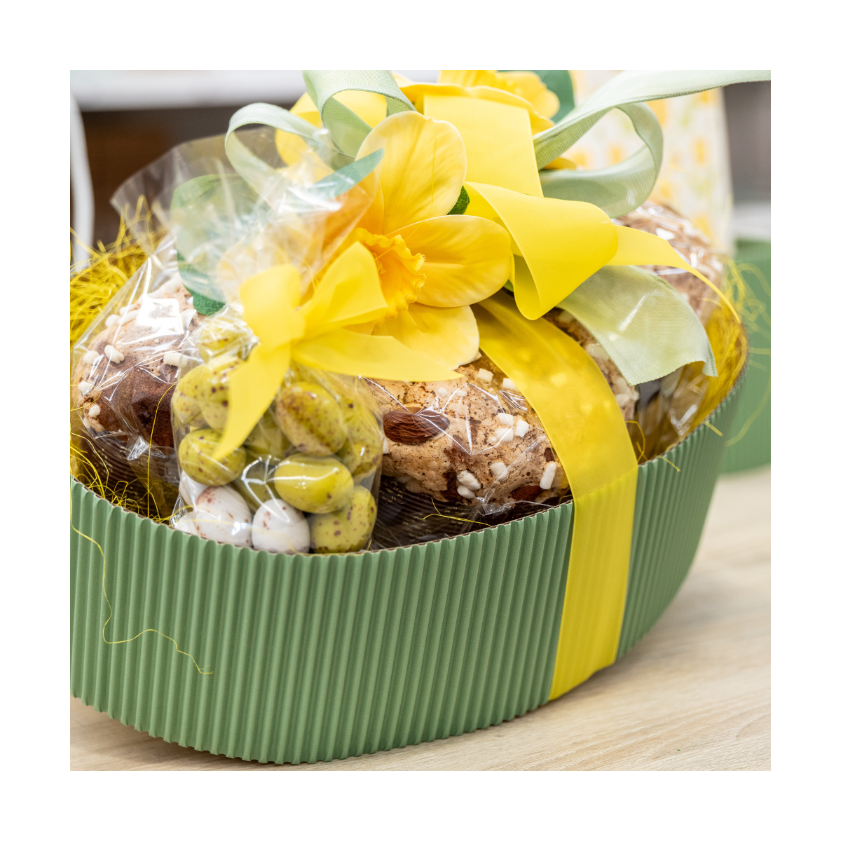 Ideale per colombe pasquali, dolci artigianali, composizioni regalo e bomboniere, valorizza il contenuto grazie alla forma ovale e al design raffinato del cartoncino plissé.