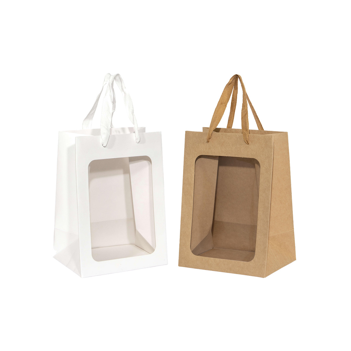 Il sacchetto in carta con finestra trasparente è pensato per negozi di articoli da regalo, pasticcerie, negozi di abbigliamento, allestitori di eventi e bomboniere che vogliono offrire confezioni eleganti e professionali.